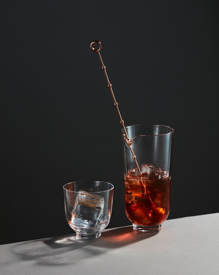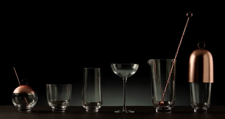 Inspired by Audrey Hepburn, the collection is at once bold and subtle, playful and nuanced, and elegantly tailored. Designed for, and in consult with, expert mixologists from around the world, the collection features a variety of glassware forms and metal accents that elevate the experience of both making and enjoying a well-crafted cocktail of any kind.